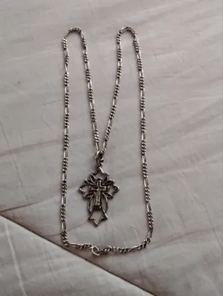 Elegante cadena con un colgante en forma de cruz.De plata - Diseño detallado en la cruz. - Cadena con eslabones finos.