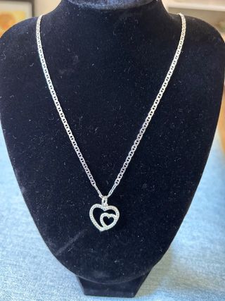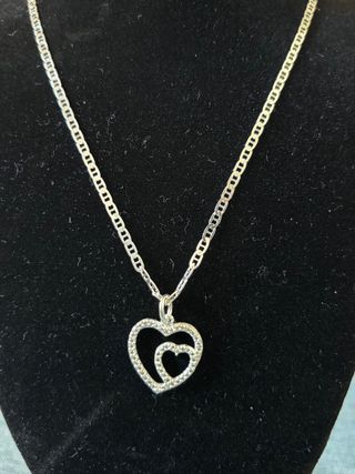 Elegante cadena con un colgante en forma de corazón. Un accesorio delicado y llamativo. Medid de la cadena 42 cm. - Colgante con forma de corazón. - Cadena fina y plateada.