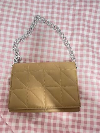 Bolso de mano con un diseño acolchado y cadena metálica. - Acabado liso. - Cierre de solapa. - Asa de cadena plateada.