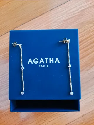 Elegantes pendientes largos de Agatha Paris. -De plata y oro - Diseño de cadena fina. - Adornados con pequeñas circonitas. - Cierre de presión.
