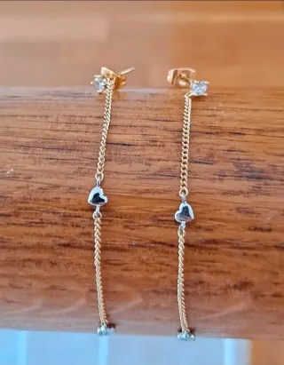 Elegantes pendientes colgantes con un diseño delicado. Cuentan con una cadena fina que termina en un pequeño detalle. - Diseño colgante. - Detalle de piedra brillante.