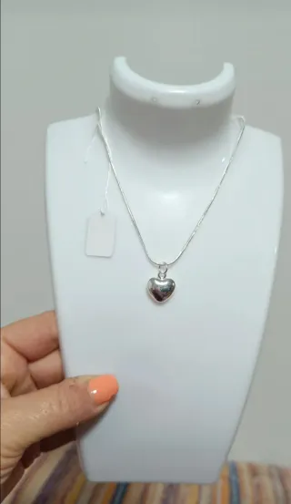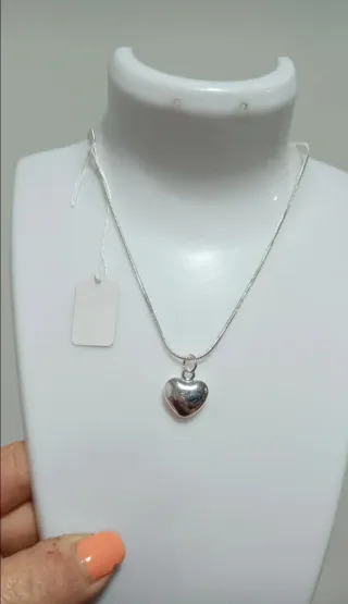 Elegante collar con colgante en forma de corazón. - Cadena fina de plata. - Colgante de corazón liso y brillante de plata - Nuevo con su etiqueta