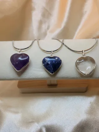 Colgantes de piedra natural y Plata de ley: Corazón Cuarzo Blanco Corazón Amatista Corazón Sodalita Son de piedra natural. Nuevos, sin uso. Se venden por unidad y el precio no incluye la cadena.