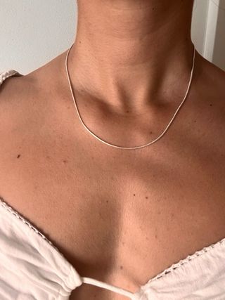Elegante cadena fina bañada en plata, de tamaño medio. - Diseño delicado y versátil. Dispongo de dos unidades.