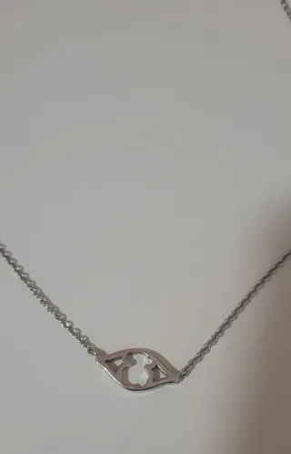 Elegante collar de la marca Tous con osito. - Cadena fina de plata. - Colgante con oso. - Cierre de mosquetón.