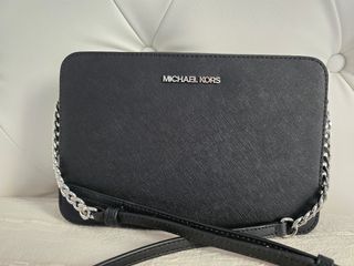 Bolso bandolera de Michael Kors. - Diseño elegante y versátil. - Cadena metálica plateada. - Correa de cuero ajustable.
