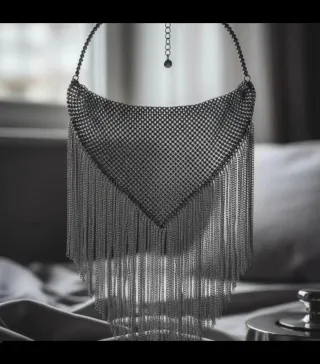 Elegante bolso de mano, como nuevo, ideal para ocasiones especiales. Su diseño intrincado y brillante añade un toque de glamour a cualquier atuendo. Usado una sola vez, estado impecable, como nuevo. - Adornado con pedrería y detalles enjoyados. - Incluye correa de cadena desmontable. - Cierre de cremallera.