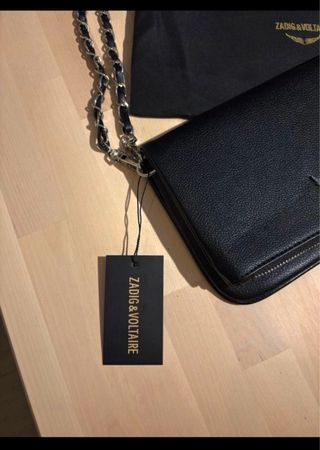 Precioso bolso bandolera de Karl Lagerfeld. Es de color negro y tiene detalles plateados. Tiene desperfecto pequeño piel como se ve última foto es como esmalte transparente de ahí el precio - Bolso de cuero. - Asa larga y cadena decorativa. - Elegante y en perfecto estado.