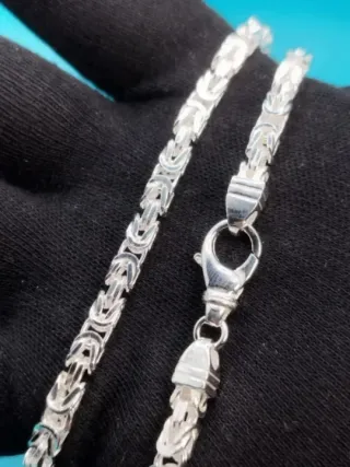 Elegante cadena de plata 925 mm. Modelo BIZANTINA diamantada maciza. Grueso 4,5 mm. Largo 60 cm. Peso 51 gr. No baño. Precio no negociable.