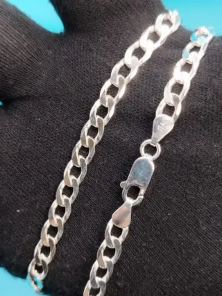 Elegante cadena de plata 925 mm con un diseño clásico y versátil. Modelo BARBADA maciza. Grueso 8 mm. Largo 50 cm. Peso 28 gr. No baño. Precio no negociable. - Material: Plata de ley 925. - Tipo de eslabón: Curb (o barbado). - Cierre: Mosquetón.