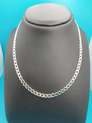 Elegante cadena de plata 925 mm. Modelo BARBADA diamantada maciza. Grueso 4 mm. Largo 50 cm. Peso 10 gr. No baño. Precio no negociable.