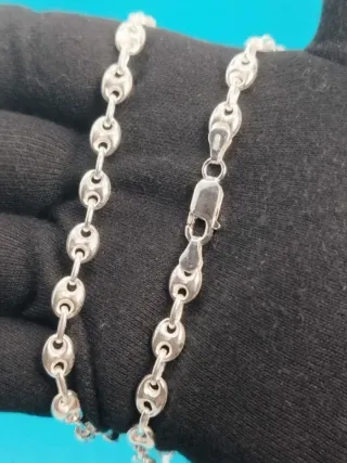 Elegante cadena para caballero, elaborada en plata de ley. - Diseño de eslabones entrelazados. - Cierre de seguridad. Largo 60 Puksera largo 20 Precio por separado cadena 32 Pulsera 22