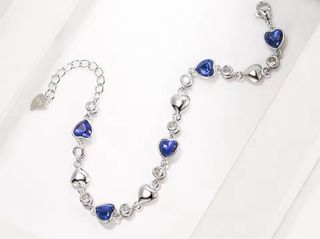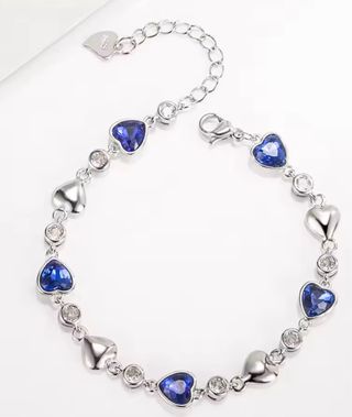 Elegante pulsera con un diseño de corazones entrelazados y circonitas azules. Un accesorio que aporta un toque de brillo y sofisticación. - Diseño de corazones. - Detalles con circonitas. - Cadena ajustable.