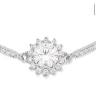 Pulsera de Plata de Ley y circonitas. Destaca su circonita central, blanca en talla brillante, rodeada por una corona de circonitas blancas de la máxima calidad. Diámetro del rosetón: Ø8 mm. Colores de las circonitas: blanco calidad superior. Tamaño de las circonitas: Ø6 mm - Ø1 mm aprox. Talla: brillante. Tipo de engaste: garra. Acabado: brillo. Tipo de cadena: forzada. Longitud de 16 cm más cadena de alargamiento de 4,5 cm. Cierre de mosquetón. Incluye caja. Referencia 115955A