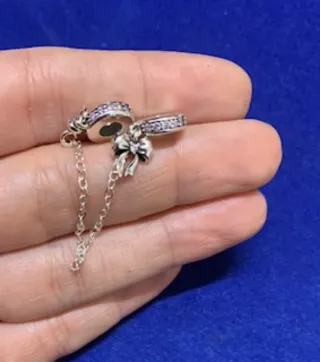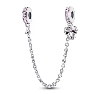 Cadena de seguridad para la pulsera de Pandora con diseño de lazo. Muy detallada y sofisticada. Diseño elegante con circonitas rosas. De Plata, tiene el sello s925. Cómo regalo acertarás seguro, es un bonito detalle. Sin plomo, sin níquel, es antialérgica, no daña la mano. Tengo charms en mi perfil. Todo está sin estrenar y a buen precio. Hago envíos :) - De Plata de ley. - Adornada con circonitas rosas. - Añade un toque de brillo y de seguridad a tu pulsera de Pandora, cierre seguro. - Tengo dos iguales a 17,50€ la unidad.