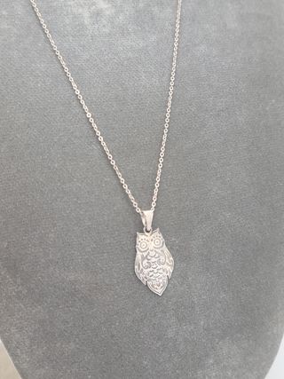 Precioso colgante de búho en plata de ley. Incluye cadena. El colgante es de un diseño elegante y delicado. - Material: Plata de ley. - Incluye cadena. - Diseño de búho.