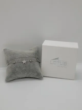 Preciosa pulsera Lotus de plata de ley, ideal para cualquier ocasión. ✨ - Diseño delicado con pequeñas flores. - Dos cadenas finas. - Cierre seguro y cómodo. - Perfecto estado.
