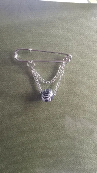 Precioso broche con un diseño elegante y moderno. - Acabado plateado. - Dos cadenas finas. - Cuenta decorativa con diseño de escamas.