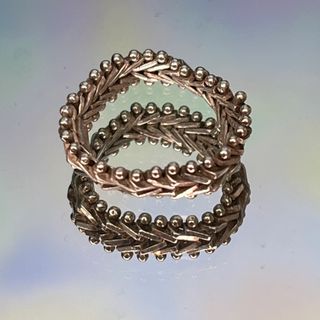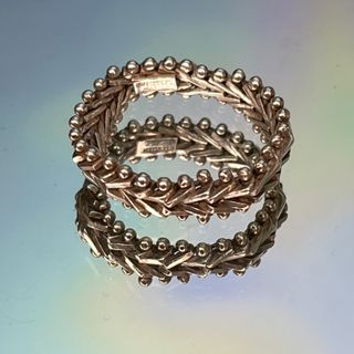 Cómodo anillo de cadena mexicano en plata de ley. Trabajo artesanal preciso con motivos que recuerdan a plantas. Lleva los sellos MA120 MEXICO y 925. Hermosa y delicada pieza de diseño. Es liviano, fácil de llevar y muy guapo.