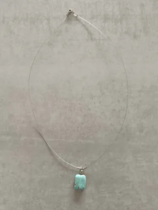 Elegante colgante con una piedra turquesa y detalles plateados. - Piedra central de color turquesa. - Cadena fina de color plateado. - Cierre de mosquetón.