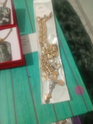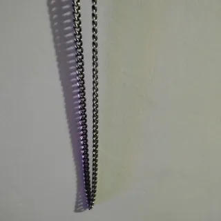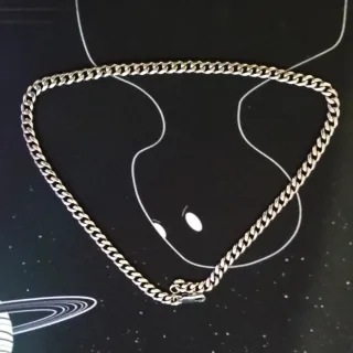 Elegante cadena de collar con un diseño de eslabones entrelazados. - Acabado metálico brillante. - Estilo clásico y versátil. - No se de que material es pero lleva conmigo 5 meses metida en un cajon y esta como nueva - Tampoco se la marca pero es del ex de una amiga