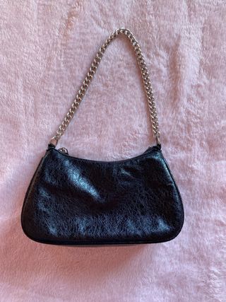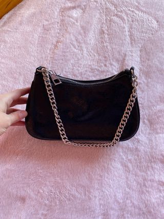 Bolso negro con cadena plateada