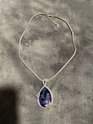 Elegante collar con colgante de lágrima azul y detalles plateados. - Diseño con forma de cisne. - Cadena de plata. - Cristales incrustados alrededor del colgante.