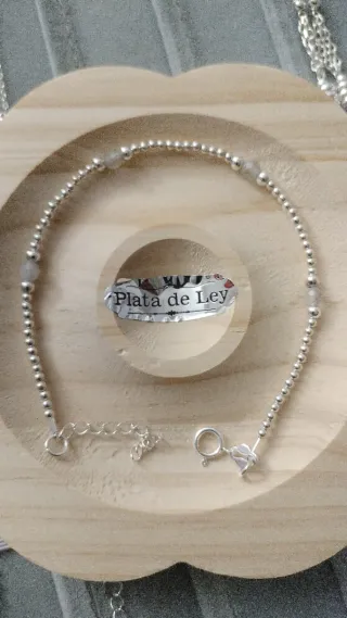 Pulsera Plata Bolitas y Piedra
