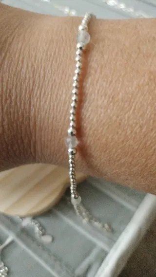 Elegante pulsera con un diseño de bolitas y cierre ajustable. - Bolas de plata. - Cadena con cierre deslizante para ajustar a medida.