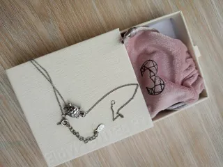 Tobillera con una delicada tortuga, en acero inoxidable de la mejor calidad (316L). Material: Acero inoxidable quirúrgico (316L) Color: Plata Longitud: 21,5 cm + 4 cm de ajuste - Diseño de tortuga. - Cadena plateada. - Incluye bolsita de tela rosa. Cuesta 18€ en tienda.