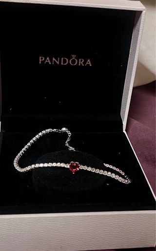 Elegante pulsera con un diseño delicado y un toque de color. - Cadena de plata de ley. - Detalle central en forma de corazón de color rojo. - Circonitas brillantes a lo largo de la cadena. -sin caja