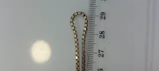 Cadena de 40cm de Plata Italiana de Ley. Modelo Veneciana. Elegante y Original de Plata auténtica. Hay que medirse el cuello antes de comprar porque en las fotos parece más gruesa pero es CORTA y muy FINA. Está fotografiada sobre un metro para que la midan bien antes de comprar, por favor