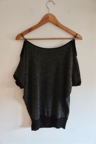 Camiseta plateada y negra con cadena