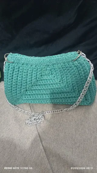 Bolso tejido verde con cadena plateada