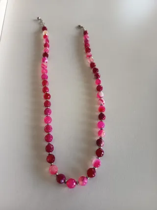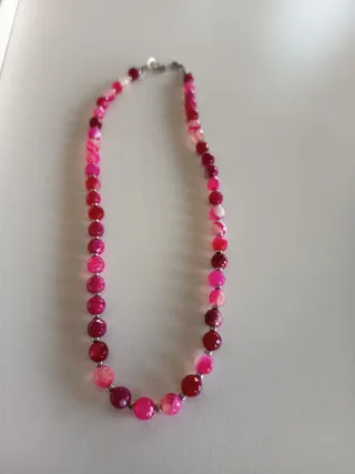 Elegante collar con piedras naturales de ágata y detalles en plata. Un accesorio único que aporta un toque de color y sofisticación. - Piedras de ágata facetadas. - Cierre y cadena de plata. - Diseño delicado y moderno.