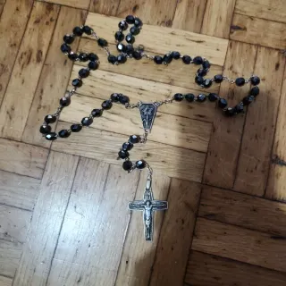 Rosario de plata con cuentas negras
