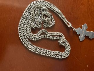 Cadena estilo Y2K con colgante de cruz. - Diseño inspirado en Chrome Hearts. - Acabado plateado brillante. - Cadena con eslabones detallados.