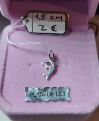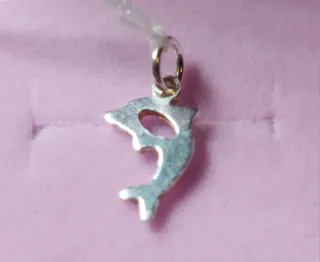 Colgante de Plata de Ley Italiana 925. Pequeño delfín de la suerte de Plata Auténtica. Medidas en las fotos. Sin Cadena.
