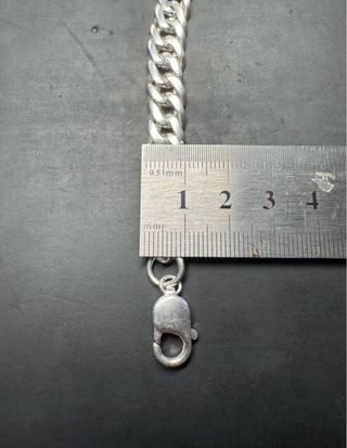 Elegante cadena cubana con un diseño llamativo. - Acabado plateado brillante. - Cierre seguro y fácil de usar. - Precio original 200€ +/- - Comprada para videoclips pero nunca llegó a usarse - Marca Aporro Acepto ofertas