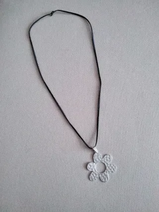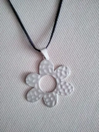 Colgante con diseño de flor. - Colgante con cadena. - Diseño de flor martillada. - Cierre de cordón azul marino.