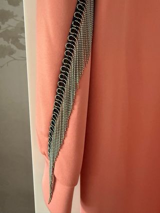 Vestido color salmón con detalle de cadenas