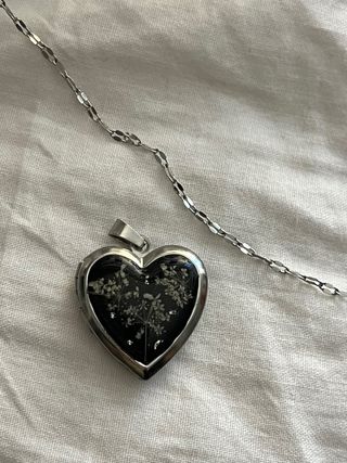Cadena y colgante con forma de corazón para llevar cenizas de tu ser querido, ya sea humano o mascota. Cadena de Plata de 37cms comprada en El Corte inglés, colgante comprado en tienda de urnas funerarias. Ideal para llevar contigo un recuerdo especial. - Diseño de corazón con detalles en nácar. - Cadena de plata. - Incluye pequeño kit para rellenar. Madrid zona Alto de Extremadura o envío.
