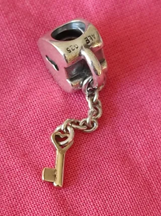 Precioso charm de Pandora con diseño de candado, corazón y llave. Precio nuevo 79€ MÁS CHARMS ORIGINALES EN MI PERFIL - Fabricado en plata y oro. Precio nuevo 79€ - Detalle de cadena. - Grabado 'ALE 925'.