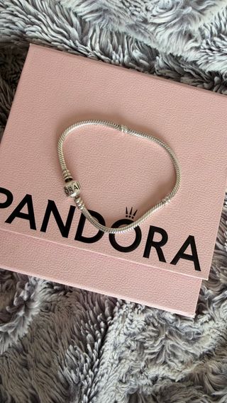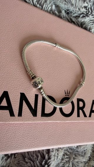 Se venden pulseras Pandora con abalorios, todo es original de Pandora . Para precios dime cuál te gusta Pulsera sola 24€ Charms desde 11€ hasta 15€ cada uno - Diseño de cadena plateada. - Abalorios con detalles en varios colores y formas. - Cierre de seguridad.