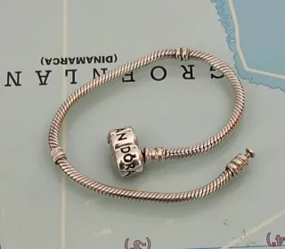 Pulsera de la marca Pandora, con un diseño clásico y elegante. CON CAJA - Cadena tipo serpiente. - Cierre seguro. - Charm con logo de la marca incluido.