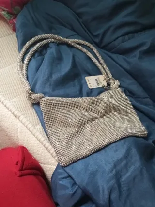 Bolso de mano plateado con cadena