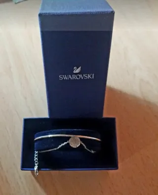 Elegante pulsera de la marca Swarovski. - Diseño con un disco central. - Cadena fina y delicada.