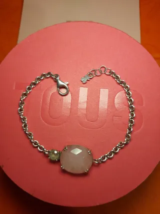 Elegante pulsera de la marca Tous, elaborada en plata. - Diseño con dos piedras semipreciosas. - Una piedra principal de cuarzo rosa facetado. - Una piedra secundaria de topacio. - Cadena de eslabones finos. - Cierre de mosquetón. Descatalogada
