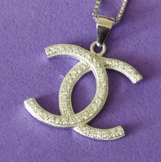 Colgante y cadena de plata 925, rodio y circonitas. Cadena de 40 cms largo. Colgante de 23 x 19 mm.