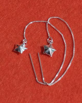 Estrellas de plata 925. Longitud de la cadena 9'5 cm, 2 cm perno. Diámetro de la estrella 9'3 mm.